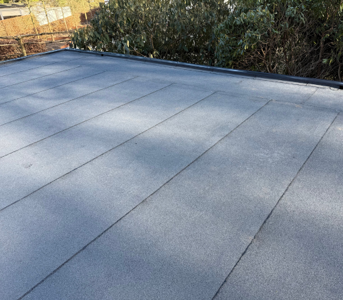 Een strak en duurzaam plat dak dat het bedrijfspand van De Houtbouwers B.V. optimaal beschermt tegen de elementen. De nette afwerking geeft het pand een verzorgd uiterlijk, en dankzij de hoogwaardige materialen en vakkundige uitvoering is het dak weer jarenlang onderhoudsarm en waterdicht.