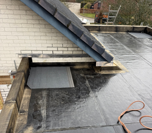 Na het verwijderen van de oude dakbedekking is een dampscherm aangebracht, gevolgd door nieuwe isolatieplaten die mechanisch zijn bevestigd. Hierop is hoogwaardige EPDM-dakbedekking geplaatst met strakke naadafwerking. De goten zijn vernieuwd en de randaansluitingen tegen de gevel zijn waterdicht afgewerkt met loodslabben en kimfixatie. Alle details zijn netjes weggewerkt voor een duurzaam resultaat.
