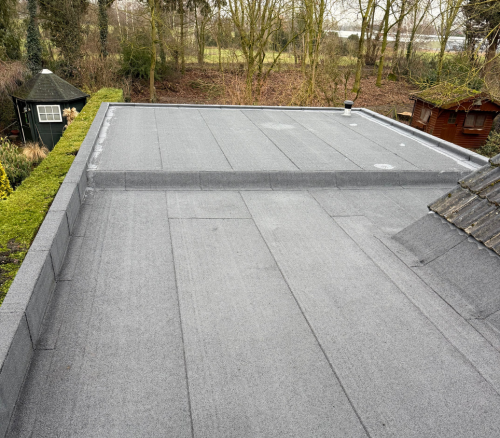 Een goed geïsoleerd en volledig waterdicht plat dak met strakke goot- en randafwerking. De woning is beter beschermd tegen warmteverlies en weersinvloeden. De bewoner kan jarenlang vooruit zonder zorgen over lekkages of energieverlies via het dak.