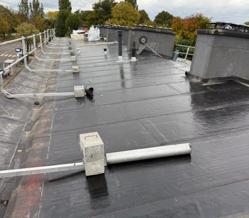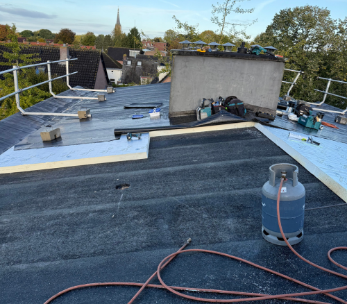Met behulp van een telescoopkraan zijn de oude materialen afgevoerd en nieuwe dakbedekking, isolatie en benodigdheden op het dak gebracht. Het volledige dak is voorzien van nieuwe bitumineuze dakbedekking met aandacht voor alle doorvoeren, ventilatiekappen en randafwerkingen. Door de inzet van zwaar materieel kon het team snel en veilig werken zonder het dagelijks leven van de huurders te verstoren.