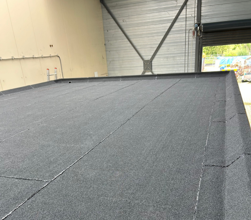 Een vlak, strak en volledig waterdicht dak dat perfect aansluit op het prefab bedrijfsgebouw van Van Hout Prefab. Het pand is nu optimaal beschermd tegen weersinvloeden, en de nette afwerking weerspiegelt het vakmanschap waarmee VOS Dakprojecten ook complexere projecten aanpakt.